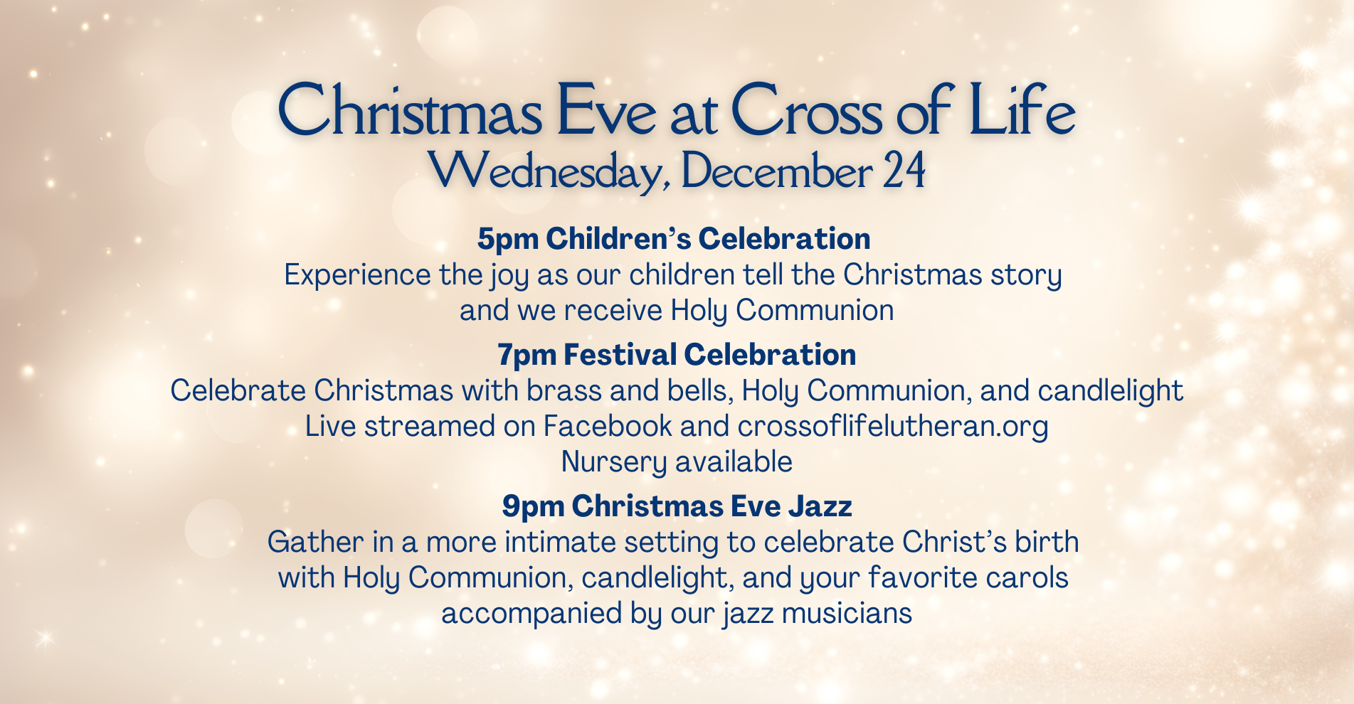 All are welcome to celebrate the birth of Jesus at Cross of Life! 5pm Children's Worship Service with Holy Communion Experience the joy as our children tell the Christmas story...
