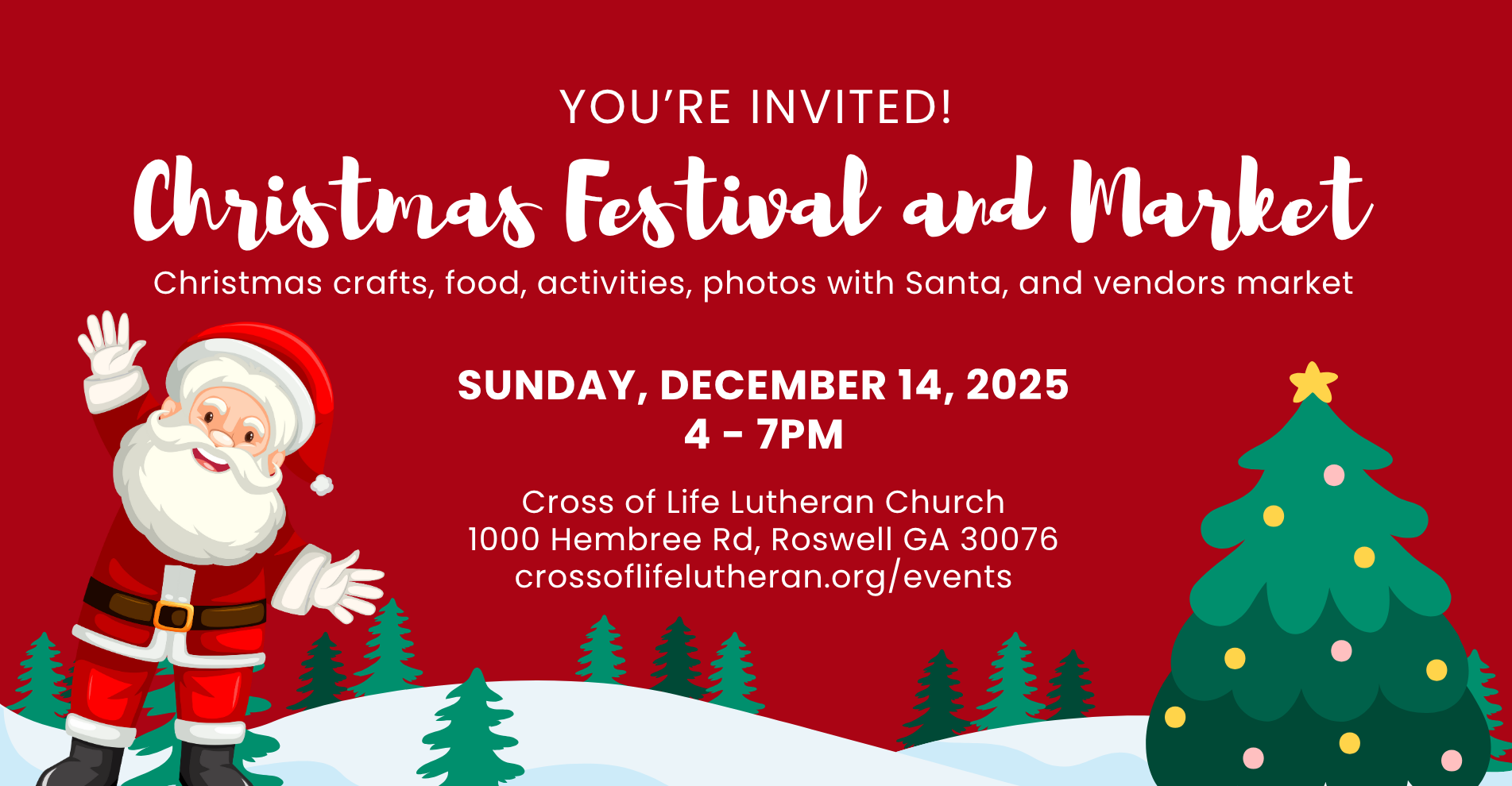 Don’t miss the free Christmas concert from 3PM – 3:45PM, featuring Cross of Life musicians and North Atlanta Talent Education (NATE)!